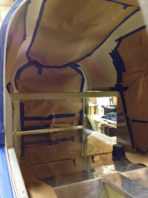 Lots of masking. This takes more time then the painting. I only wanted to paint the door frame, the rear cross bar, around the baggage door, and a few other exposed areas.