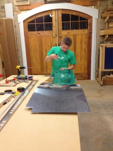 I actually squeezed in a little time tonight. I match drilled all the holes in the skins and put the small bend on the trailing edges. I used a small wooden block tool that I made to make the bends. (1.5)
